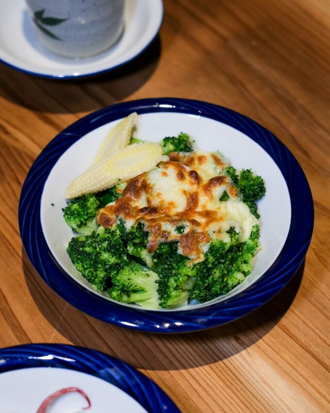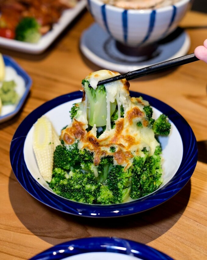 ▼擁有金黃色澤的焗烤花椰菜,鋪在充滿水分的花椰菜上,熱騰騰時夾起來起司還會牽絲,整體也不會過於油膩。