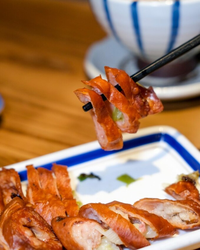 ▼上桌就散發香氣的酥炸肥腸,特別塞著增加風味的蔥段,酥酥脆脆,臭中帶香的滋味很過癮!