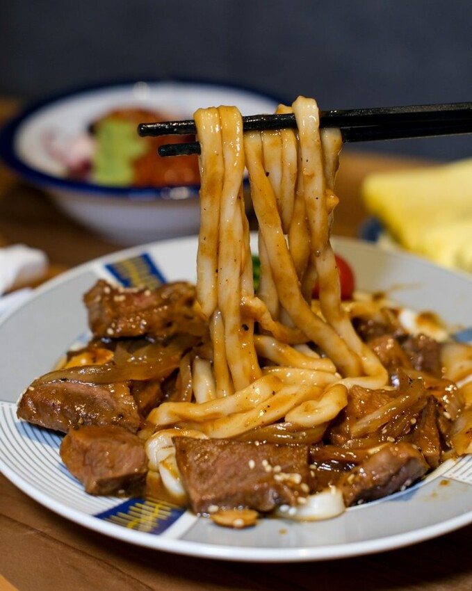 ▼充滿創意的菲力奶油拌烏龍,結合日式和西式的風味,以略帶辣度的黑胡椒醬汁調味,搭配Q彈麵條及嚼勁牛肉,讓人不知不覺吃光光很涮嘴~