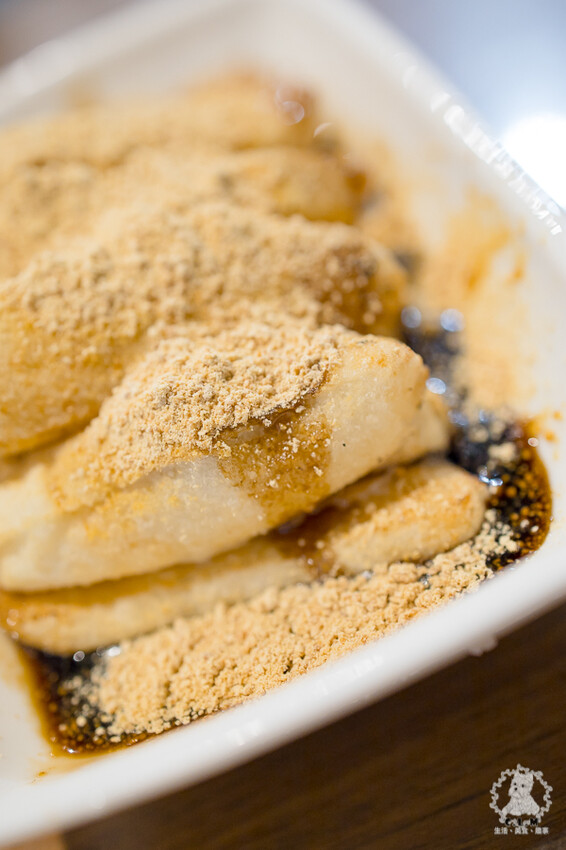 我看許多人桌上也有這份,外皮酥脆,內部柔軟還有點微微米狀感,配上外頭以黑糖香為主甜味為輔的醬汁,沾上點花生粉好吃極了,不過建議要多裹一點糖汁,這樣吃起來才夠味。
