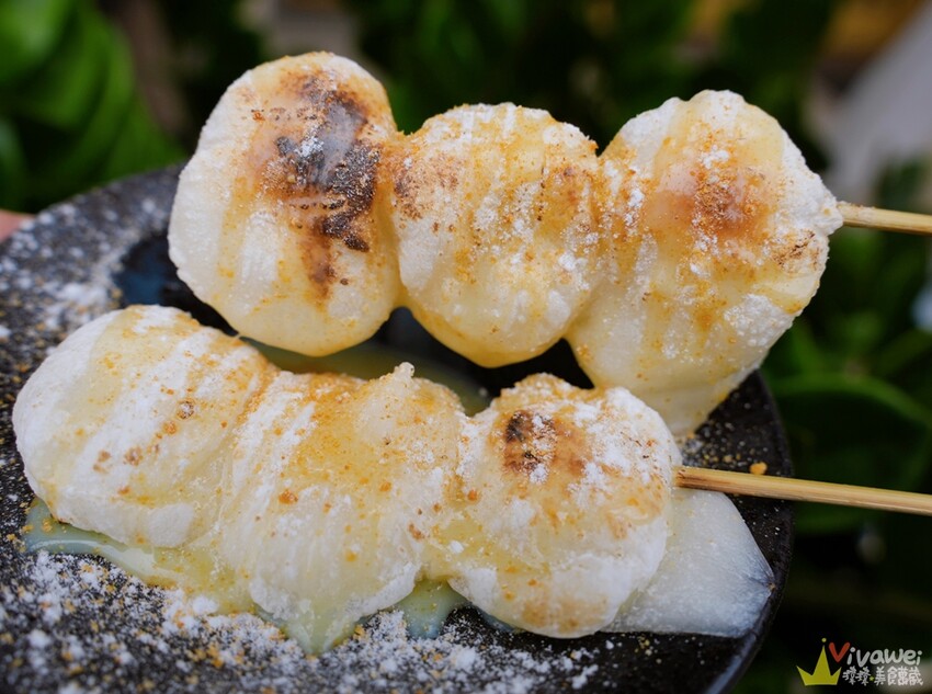 ▲日本進口的北海道糯米串,是一顆顆的麻糬串,有別於一般燒肉店給的長方形扁扁的麻糬,這種日式麻糬口感很軟Q,米香味會在口中殘留,而搭配了煉乳,更是香甜好吃唷!
