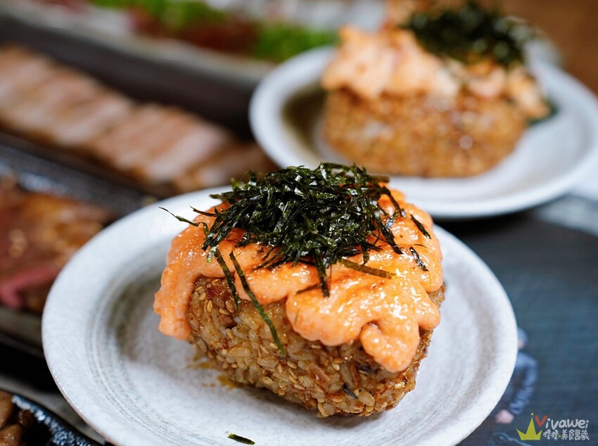 ▲烤飯糰是新鮮現捏,飯糰醬汁是店家自己煮的,外層抹的是店家特製的台式壽喜燒醬,吃起來不會太甜,比較迎合台灣人的喜好!這款是明太子醬再加上海苔絲~鹹鹹甜甜的口味~很有層次感!