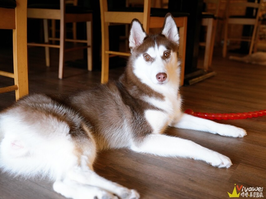 ▲店裡的摺耳貓和哈士奇未免也太可愛了吧!大家可以跟他們玩,但是千萬不能餵食他們吃任何調味過的食物,以免傷了他們的腸胃唷!
