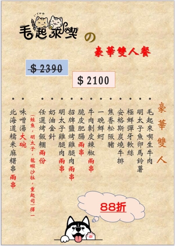 【毛起來喫的雙人豪華餐2100元】