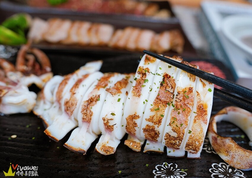 ▲軟絲是經過急速冷凍的,食材非常新鮮,烤到七分熟以後再開始炙燒,這樣的料理方式會讓軟絲仍然保有他的水分,而且不需要多餘的調味就能吃到食材本身的鮮味,擠上一些檸檬更能提味喔😋