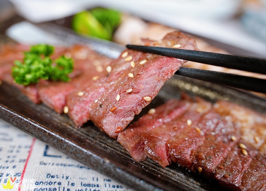 ▲這道安格斯炭燒牛排很值得點!牛排熟度適中,口感軟嫩多汁!牛排抹上一些炭燒醬,加了白芝麻點綴,可以單吃或是沾一旁的調味粉享用!而且當日壽星憑證件來用餐,還會免費送你這一道!真的是誠意十足阿👍