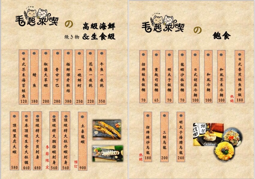 ▲這是「毛起來喫寵物友善居酒屋」的完整菜單,供參考(實際販售品項與價格,以店家現場公告為主)