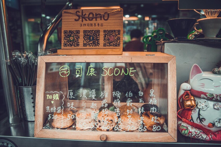 skono手作司康在龜山熱鬧的中興路上,這裡我經過了好幾次,沒有注意到有手工司康?原來它就藏身在村風兩兄弟咖啡攤車上,攤位就在眼鏡行的騎樓,低調到一個不行ㄟ!後來才知道skono手作司康有做冷凍宅配喲(skono手作司康購買網址)