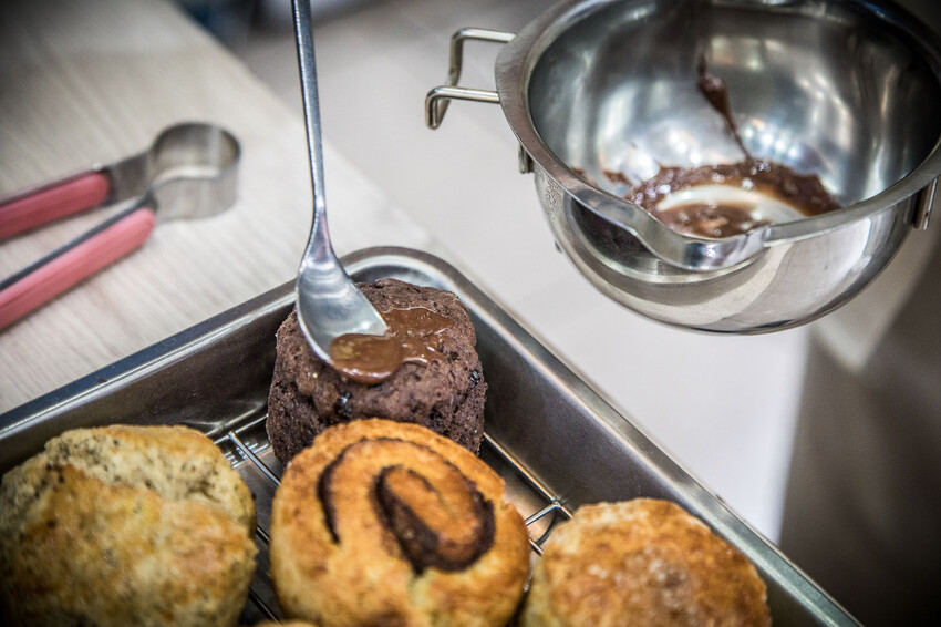 買濃可可司康表面還會再淋上一層又一層的莊園可可呢
