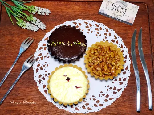 紅玉蘋果上頭有三朵婀娜可愛的蘋果花,代表著平平安安,蘋果花實在太可愛了,有一點點捨不得吃,餅皮濕潤細緻,不會掉屑也不容易走鍾。