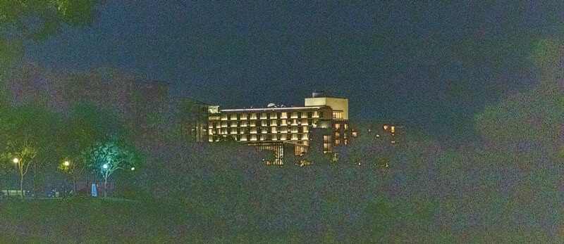 這棟便是前半段的A館,白天夜晚有著截然不同的風情,館外有著人造的潺潺流水,透著館內映出的鵝黃燈光,有種城市人難得的寧靜的夜晚浪漫。