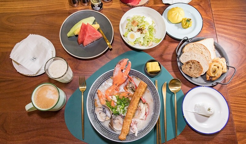 早餐是令人期待網路爆紅的波士頓龍蝦海鮮粥,除此之外早餐也有菲力牛排、鴨肝、英式、歐式、日式,多達十幾種不同早餐選擇。