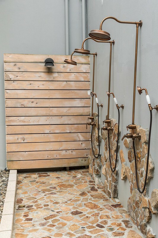 溫泉旁有戶外沖洗亭,也有如日本溫泉飯店的盥洗空間及置物櫃,並備有吹風機、毛巾、清潔用品及礦泉水。