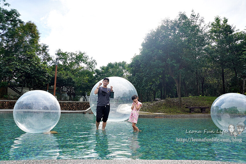 中間戲水池搭配了幾顆透明大球,
