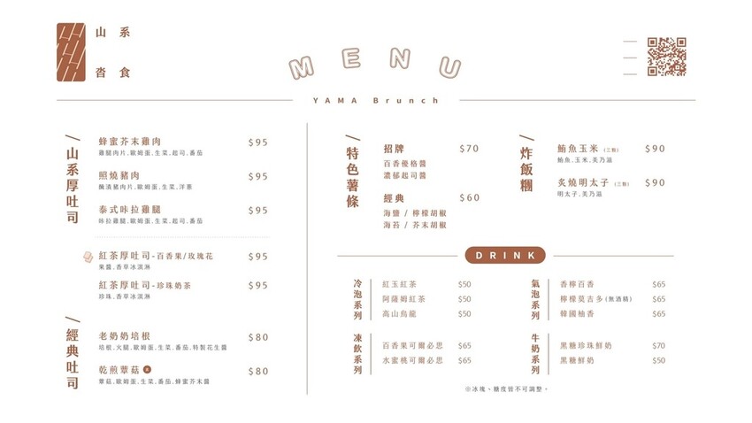 餐點部分有吐司、薯條、炸飯糰和飲料系列,