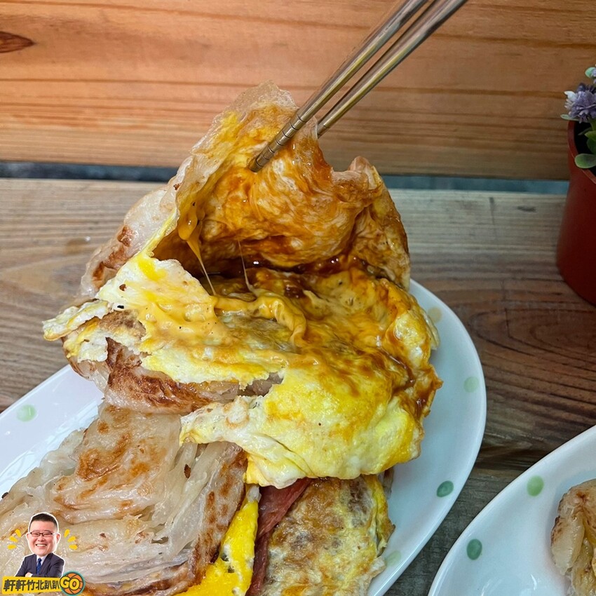 這次軒軒點了經典的蔥抓餅+蛋+起司(55元)和蔥抓餅+蛋+起司+火腿(65元)。
