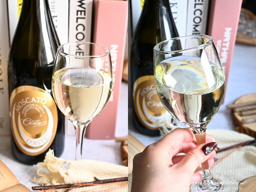這支CESTE MOSCATO D’ASTI DOCG 契斯特 蜜斯嘉 達斯提 DOCG比起其他的白葡萄酒,酒精含量較低,是葡萄酒標準中最低含量,只有5.5%酒精濃度,喝起來不會有濃烈的酒感,很適合女孩們