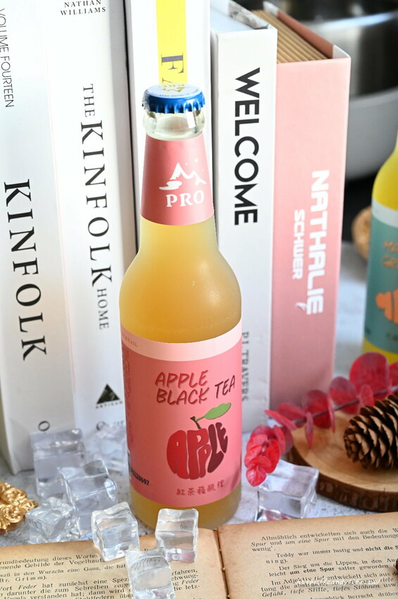 以蘋果汁搭配南投日月紅茶,微酸甜的果香味交織著紅茶的香醇氣息,微氣泡的酸甜口感,清爽又不會有明顯的酒感