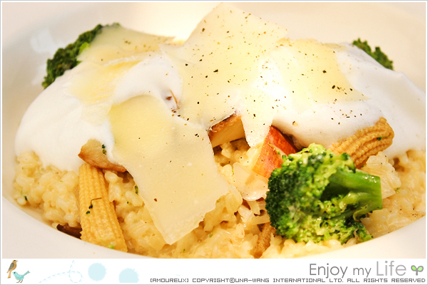 最後一道主餐是素食的奶油野菇燉飯(素食套餐)