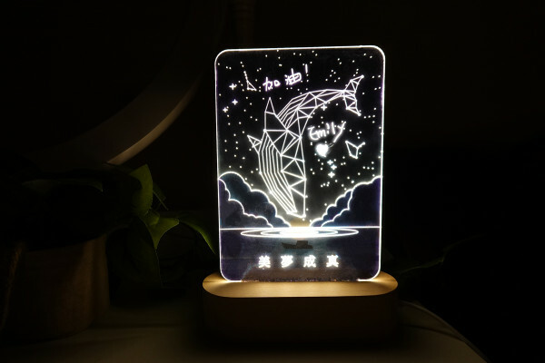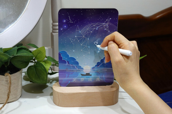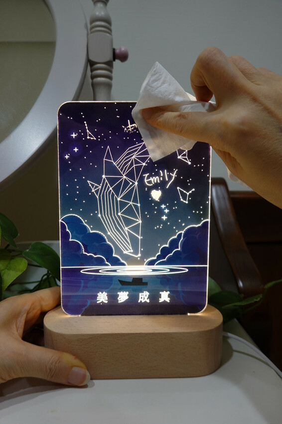 水性塗鴉筆可以在透明壓克力燈板上面盡情揮灑、塗鴉,能隨時寫下訊息來跟別人溝通或提醒自己。也很適合在生日或重要紀念日那天在燈面上寫下祝福,讓對方滿懷欣喜地展開新的一天。