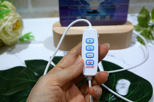 這按鍵開關設計還蠻好上手的,紅色是電源開關、「+」跟「-」可調整亮度、中間那顆藍色循環鈕可變化色溫,案件的功能看得一目了然。