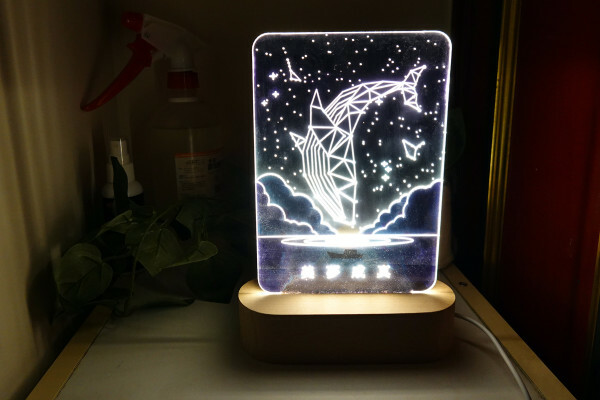 透明壓克力有類似玻璃的剔透感,搭配色菜鮮豔且圖樣細緻的底板搭,配即使不點亮也是個好看的居家裝飾。