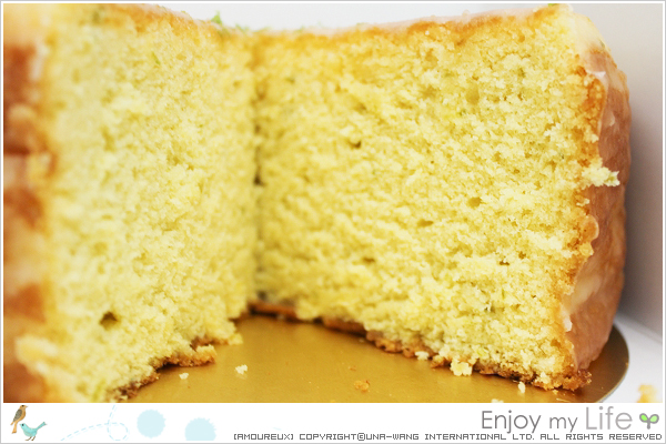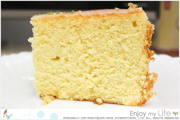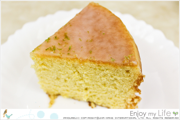 上頭的糖衣有著檸檬的酸甜滋味,搭上底下含有溼度的海綿蛋糕真是令人一口接一口