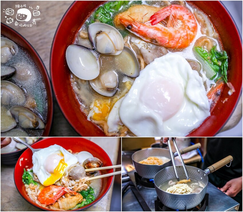 熬湯的功夫來自老闆爸爸之前火鍋店的經驗,以大骨為主加上秘方,湯頭自然鮮甜,基本款口味好吃,這碗最浮誇的就是那顆半熟蛋的視覺啦,加上不小隻的蝦子和蛤蠣,以這價格來說,配料也可以,但我這大食量吃完總想要加個料更滿足。