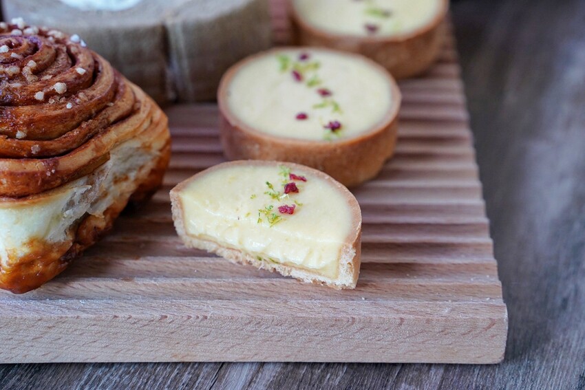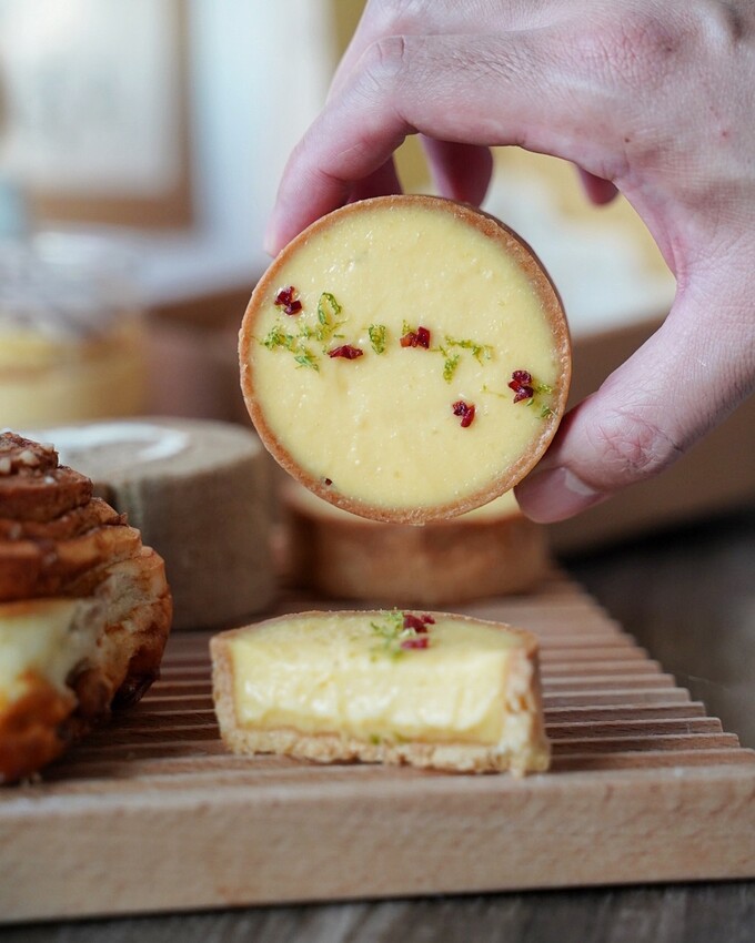 再來的檸檬塔也讓人驚艷!酸v酸v的檸檬餡相當細緻柔滑,主要以綠檸檬汁、黃檸檬果泥來製作,酸得過癮但又不會過酸,塔皮紮實又酥脆,真的只有完美能形容,推推!