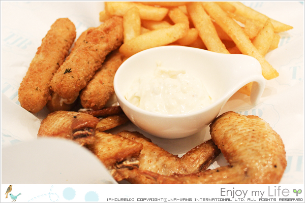 我們還點了一份派對拼盤,有起司條、薯條與火烤雞翅