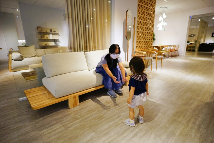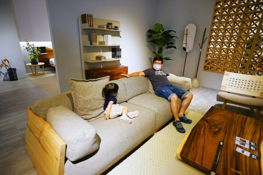 DAAZ的實木沙發非常有設計感,並兼具舒適度,我女兒自己坐上去捨不得下來欸~