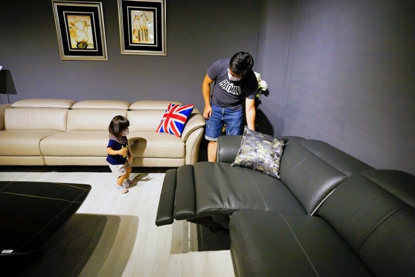 此款為一字型雙電動沙發,只要輕鬆一鍵,腳座即會升起,坐臥兩用,並配備USB充電插槽,太適合臥躺划手機用了XD.