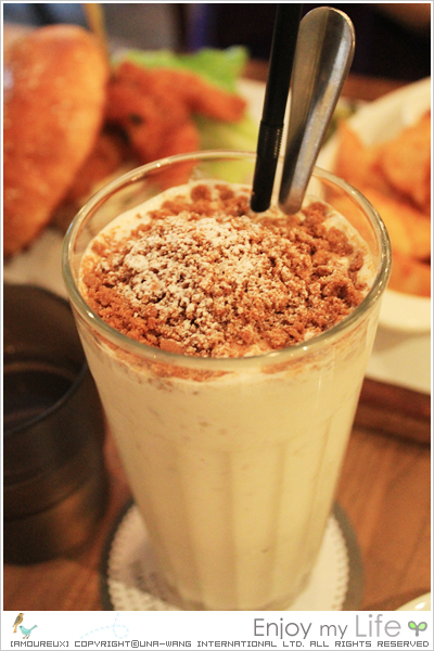 餅乾奶昔也妝點的很豐富,表層灑滿了蓮花餅碎片