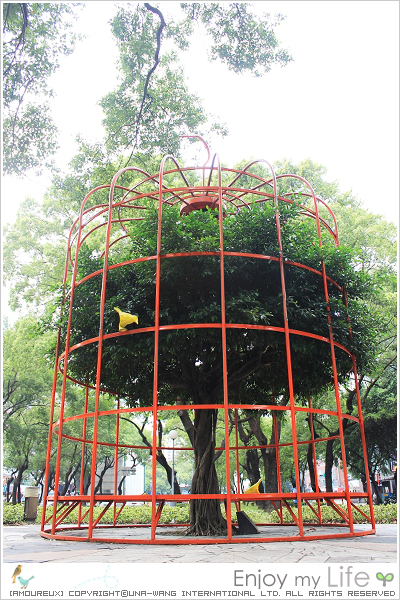 最後送上表妹的作業照,敦化區分隔島中的公共藝術「鳥籠」