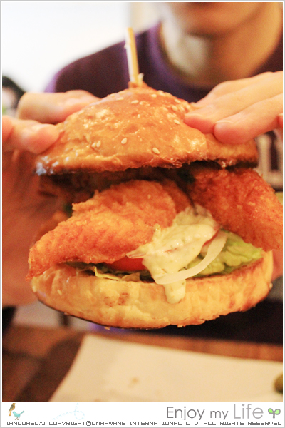 好豐富!有鮮嫩酥脆魴魚排、新鮮的生菜與酸甜的塔塔醬