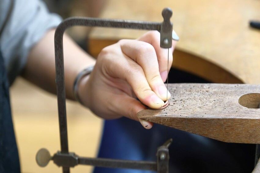 一開始會先讓學員選自己想要的風格跟大小,因為每一種風格的加工方法都不太相同,有些要用敲打,有些要用銼刀,多樣的風格讓人很驚訝原來金飾可以透過加工有這麼多樣的風貌,讓人對金屬加工的興趣又更濃厚了一些。