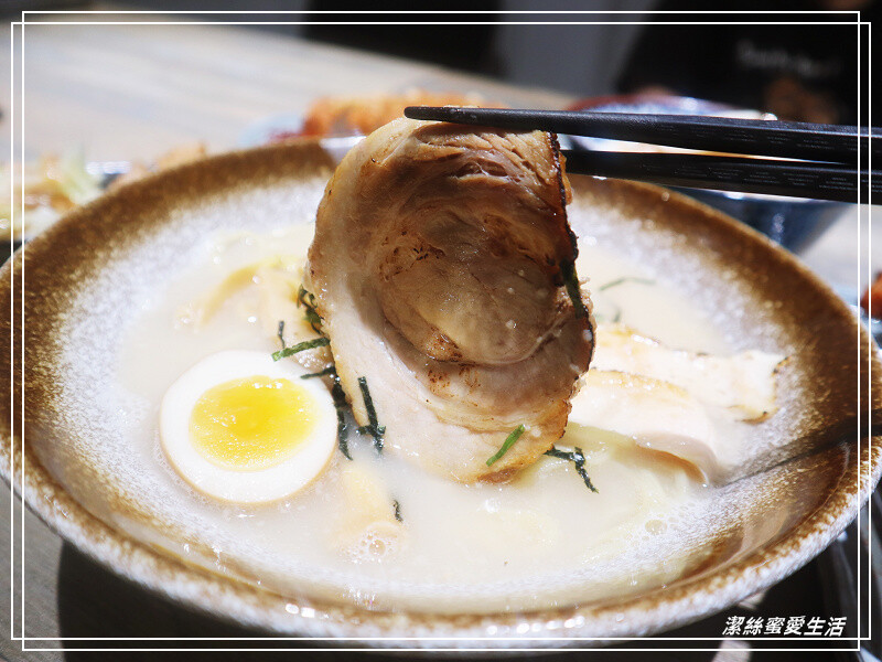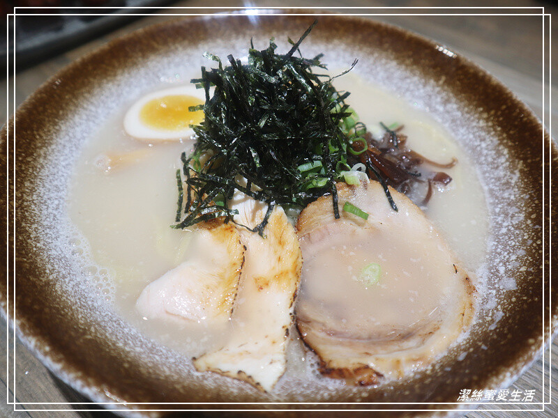 拉麵有三種湯頭,今天點的是最經典原味,配料有舒肥雞/叉燒/筍子/木耳絲/溏心蛋,再加上為數不少的海苔絲點綴。