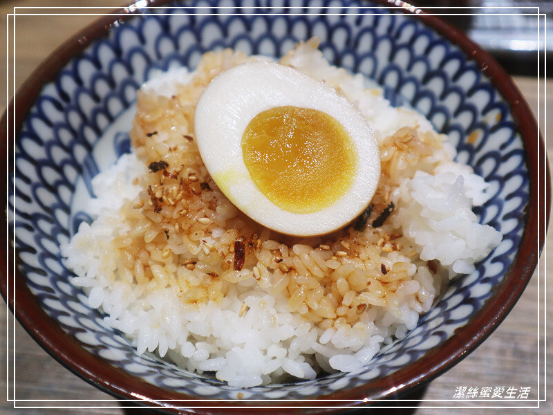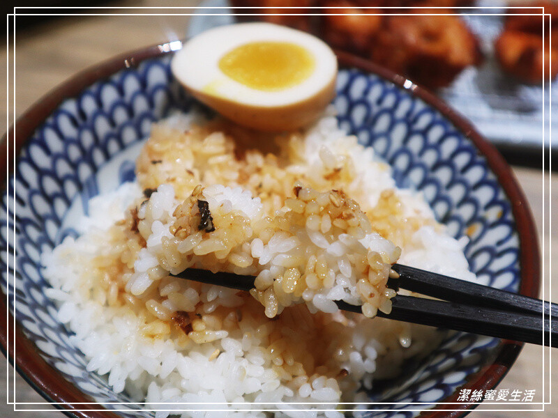 先說這白飯我竟然頗愛!其實我是愛麵食勝於白飯的人,但道頂呷的定食白飯上有淋上些許醬油和白芝麻,醬汁不死鹹,咀嚼間又有芝麻香氣,更別說還有溏心蛋——