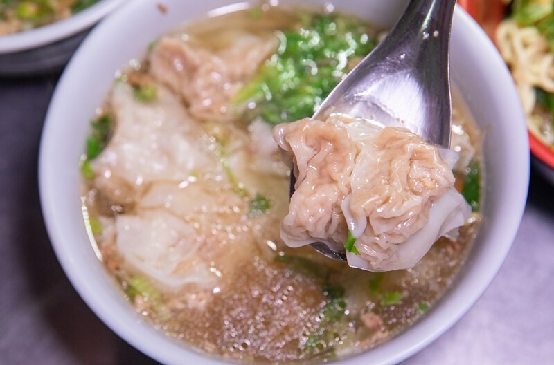 老闆推薦的餛飩板條是當天個人最喜歡的,餛飩雖然不大,但肉餡札實略帶咬勁,肉甜之餘還有一點點油蔥香,除了調味略鹹外算是蠻好吃的,板條細滑份量不少 ,配菜有韭菜、豆芽和少許的油蔥和肉燥。