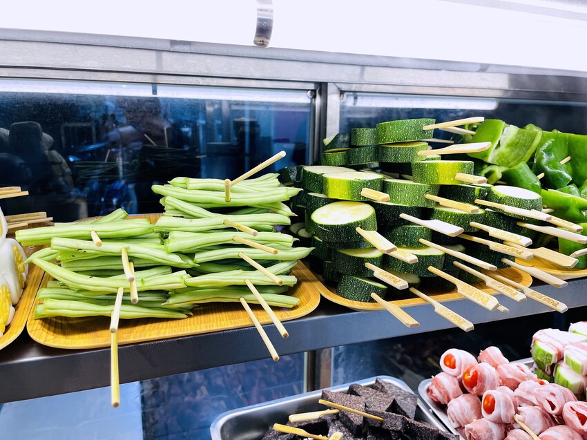 串物燒烤食材琳瑯滿目 雞 豬 牛 羊 海鮮 蔬菜 應有盡有~