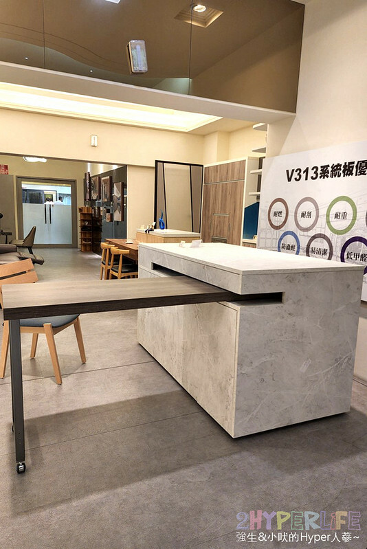 來崇維參觀都有人員接待,來三樓看看他們的展示空間!這裡就是展覽的空間哦!好喜歡這兩張木紋的桌子,好有質感