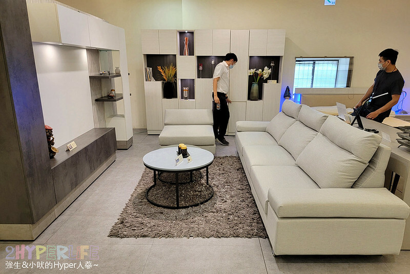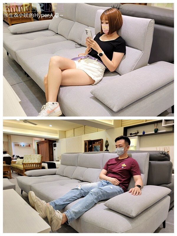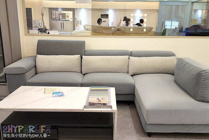 看到展示場裡有好幾張不同設計的沙發都是採用貓抓布耶,像這款貓抓布L型布沙發讓有養三隻貓咪的我們好想直接訂一組回家啊