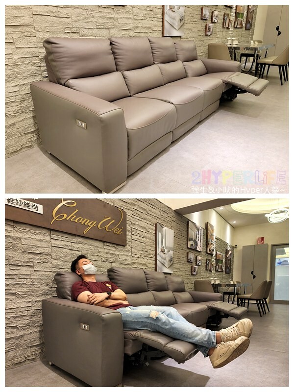 這張可以插110v電的自動抬腿沙發也很讃,強生試躺差點給他睡著還打呼這樣。這沙發也有usb充電,超方便