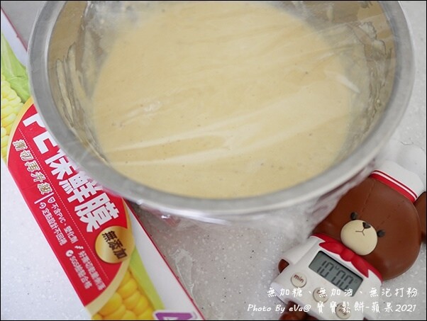 8.拌好的蘋果麵糊,用保鮮膜封好,靜置10分鐘