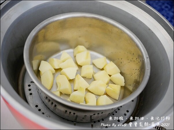 蒸熟的蘋果,放再久都沒氧化變黑蘋果喔!哈哈哈