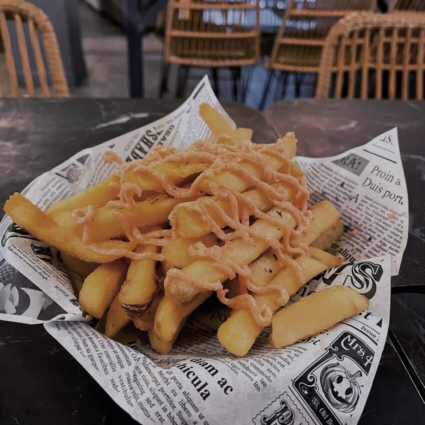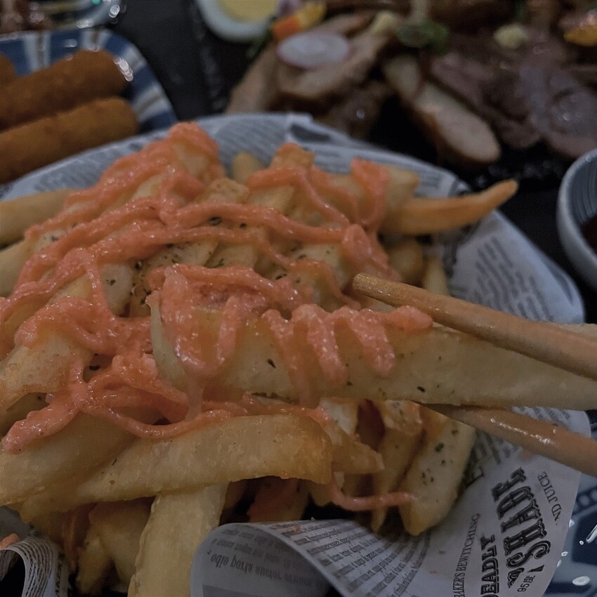 淋上明太子醬的薯條,不知道口感吃起來會是怎樣