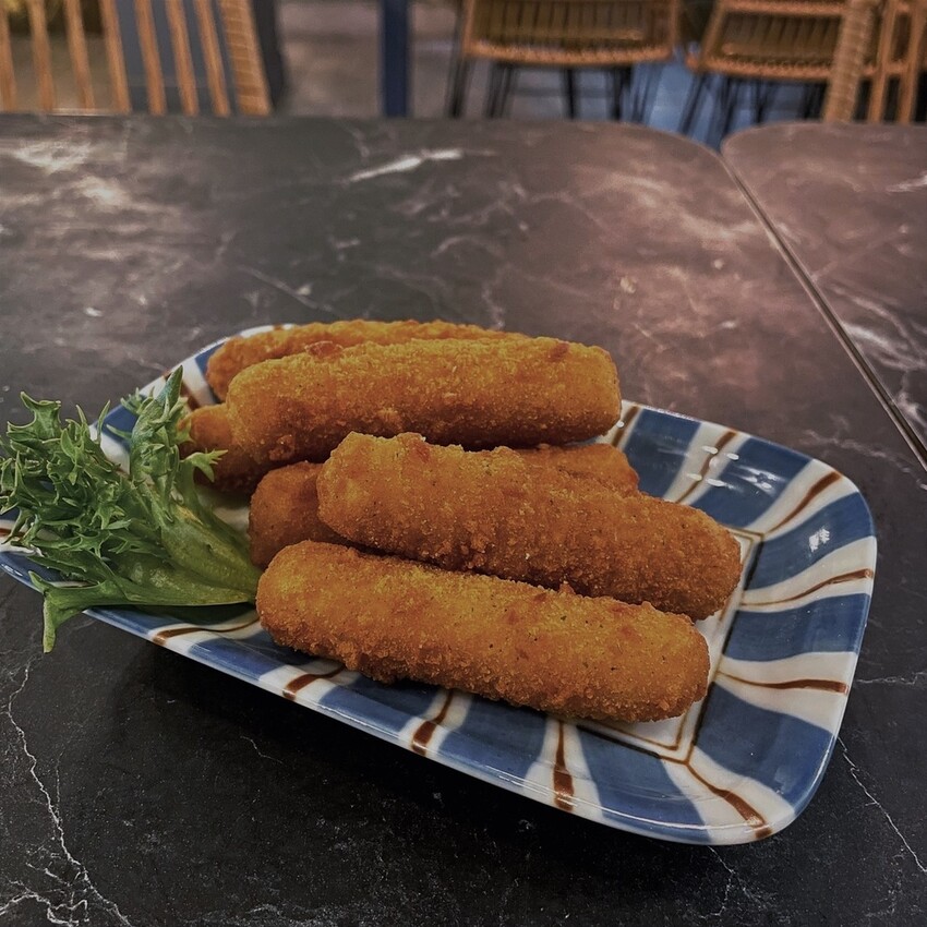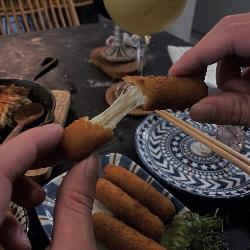 牽絲且濃醇的乳酪香氣充滿了整個唇舌間,乳酪條炸得很酥脆,整體吃起來不會太過油膩也沒有油耗味