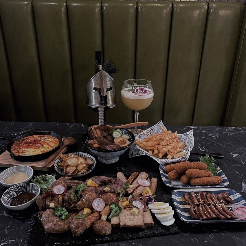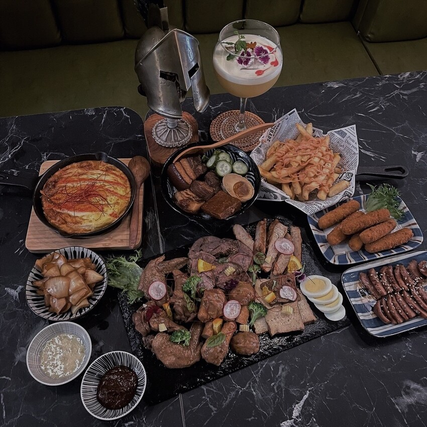 滷味拼盤$260+板烤照燒雪花里肌$120+帝王蟹義式烘蛋$180+明太子薯條$150+芝心乳酪條$100+祖傳控肉飯$100+韓式洋蔥$50+幽靈騎士$320+高貴雞$320