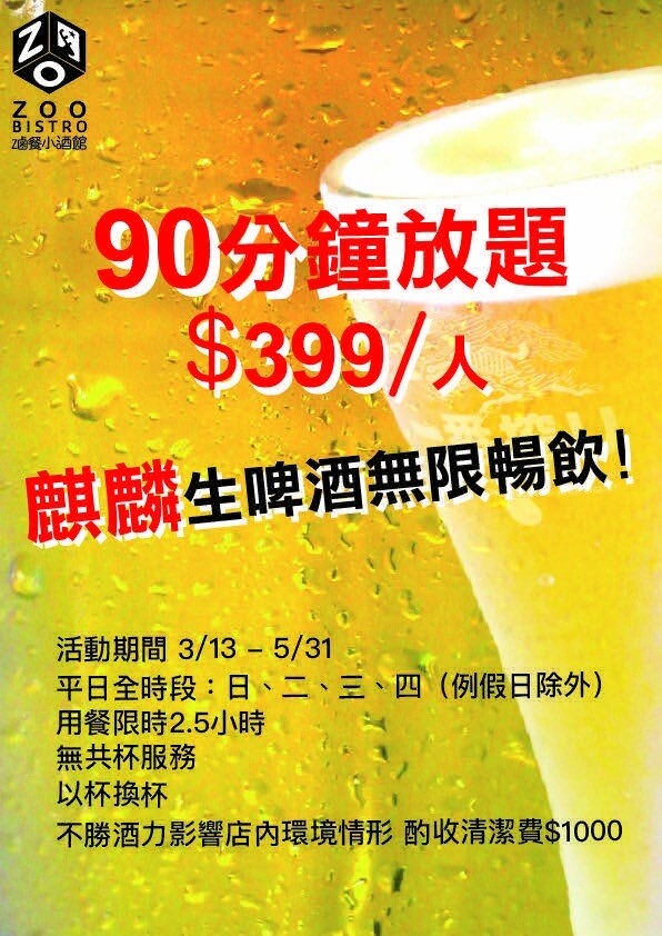 這是店家最近的生啤酒暢飲活動,喜歡喝酒的人一定要來Zoo Bistro