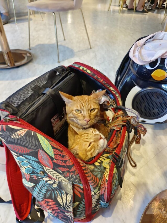 大概是這間店有一種舒適的感受吧~兩隻從頭到尾都很安靜地在背包裡頭睡覺~